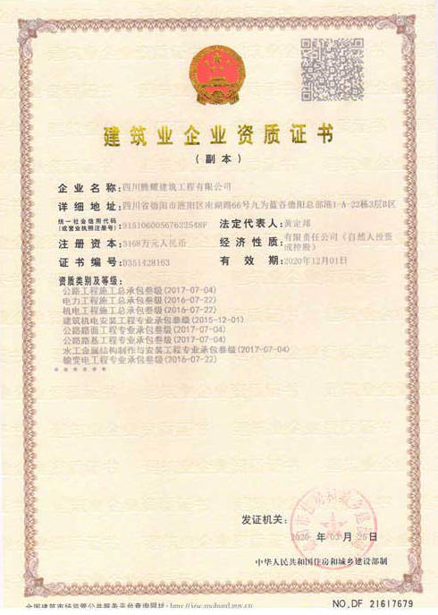 四川騰耀建筑工程有限公司(以下簡稱:四川騰耀)成立于2010年1月,注冊資金1168萬元,員工98人,其中各類注冊工程師62人(次),含高級職稱人員20人中級職稱人員42人,各類評標(biāo)專家15人,既有較強(qiáng)的專業(yè)知識,又有豐富的實(shí)踐經(jīng)驗;擁有各類設(shè)備200余臺(套)。